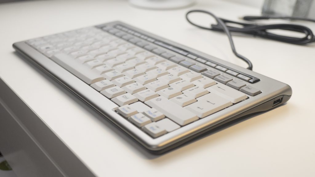 The Bakker Elkhuizen S-Board 840 Design keyboard uses a USB type interface for seamless plug and play action. There is nothing really that exciting about this keyboard though, but it is completely functional. There are no flashy RGB lighting, no macro keys that can be applied using fancy drivers. It works, and does it well, as long as you can get used to the space between each key when typing.