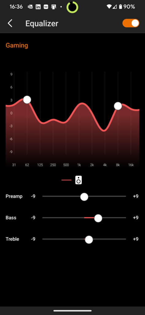 Around back you’ve got several inputs. The first, and one that I find quite impressive for a ‘gaming soundbar’ is the fact it has an HDMI Arc input, which is perfect for those plugging this into their TVs. It means all audio signals getting to the TV can run through the soundbar. You do have an optical port, a USB-C audio input and a headphone port on the front. You can also connect this to Bluetooth devices as it’s using Bluetooth 5.0.