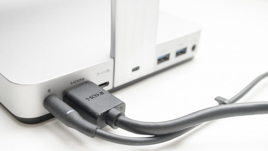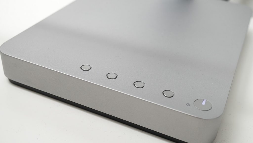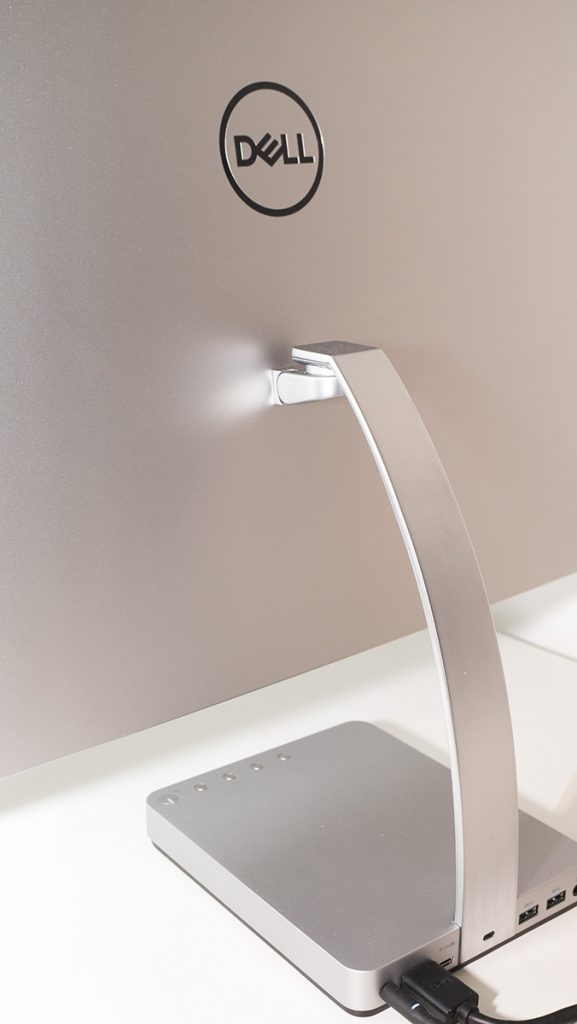 The Dell S2718D is mostly covered in a silver finish, with the tiny bezel of the screen as a shiny black surround. It’s extremely small and will take up little space on your desk. all of the connections can be found in the base of the monitor and include the power connector, HDMI port, USB Type C port, security lock slot, two USB downstream ports, and an audio line-out port. . The USB passthroughs an be used with laptops that take advantage of USB charging. The monitor itself is connected from the base using a thin metal arm. The arm can be twisted left and right, and can make the screen pan up and down for optimal viewing. There is no rotation to a portrait position.