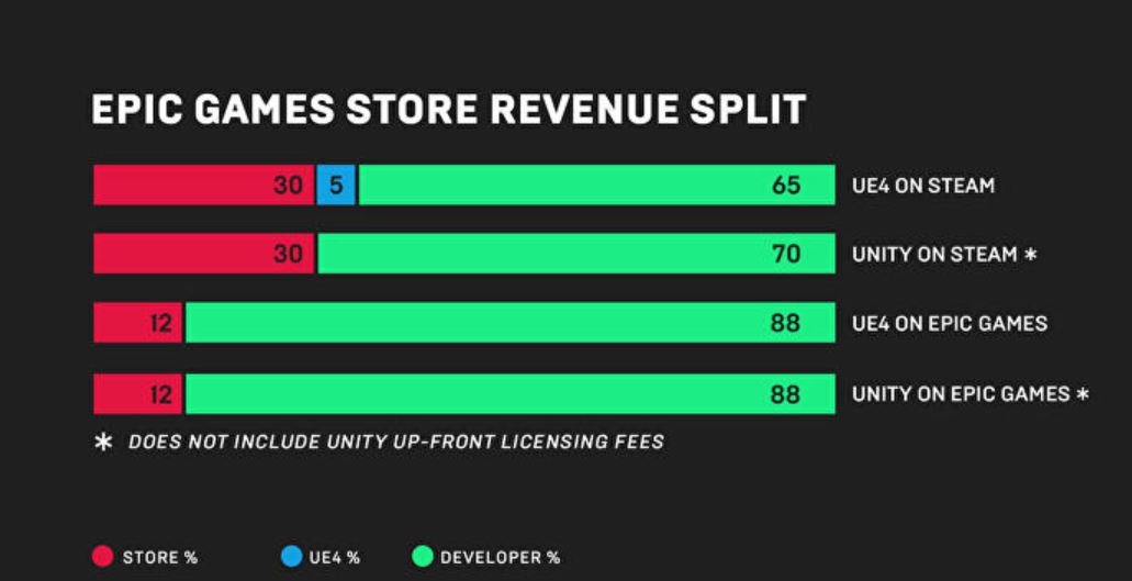 What more, Epic Games are also offering developers a larger piece of the revenue pie, allowing developers to walk away with 88% of the money earned if their game is purchased on their store. This rivals current top dog Steam who currently give developers 70% of the revenue share. Epic Games are leaving themselves with just 12% of the total revenue.