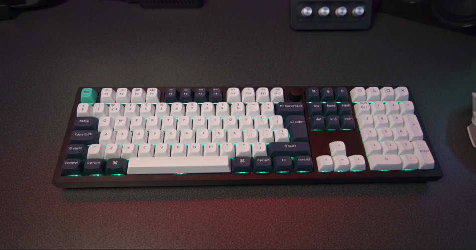 The layers of acoustic foam are pretty impressive too, as Keychron had added IPXE, PET and Latex to dampen the sound profile of this keyboard. However, it does still sound a little clicky for my personal taste though it’s more like a muted clack rather than a tinny clack Unsure if I’m actually making sense here. It doesn’t sound bad by any stretch, but I must say I’ve heard better in a keyboard. Well, more thockier anyway. Having a double gasket design gives the Q6 a decent level of bounce, without feeling like the keyboard is too squishy. This essentially means that it’s got two layers of gaskets inside. The first is between the plates, and the second is between the plates and the case itself. It’s strange because it takes little effort to type on this thing and it feels really nice, though I wish the spacebar was a bit heavier and sitting more solid in place. It’s a bit rattly as it stands. You could mod the keyboard to achieve this type of feeling if you wanted or as everything is hotswappable including the switches for three and five-pin MX style switches, you could go this route. You’ve also got some extra function keys as well as a volume knob and mute switch across the top right hand side of the Q6, and four completely custom keys above the numberpad which resemble Playstation controller buttons. It’s a nice touch, and the printed font on they keyboard is nice and clear.
