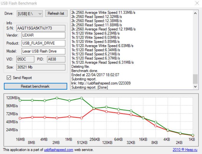 We ran a FlashBench benchmark on the stick, and although Lexar has advertised up to 130MB/s read and 60MB/s write speed, we found through our results that it was closer to 120MB/s read speed and a 50MB/s write speed on a 16MB file transfer. These differences between advertised and actual are so negligible though, and it may be the fact that we ran the test through a USB 3.0 connection, but still, there’s nothing much to complain about here.