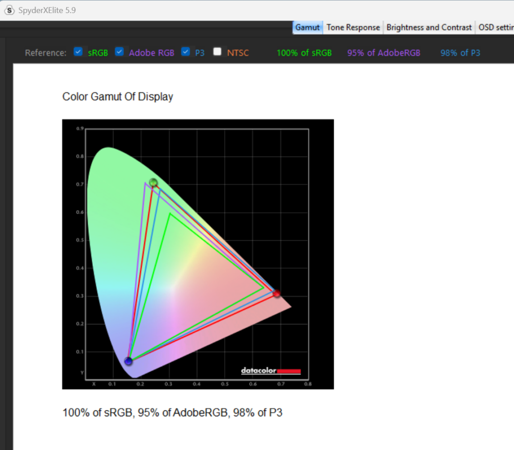 The last test I ran was for the AdobeRGB profile, which saw 100% coverage of sRGB and 95% coverage of AdobeRGB, 95% P3 coverage and 91% NTSC. Colour accuracy also remained on point too with an average Delta-E of 1.26 and an average of 1.26 and a maximum of 1.92. This is pretty much on par with the User profile, so between the two, you’re not going to really get much difference.
