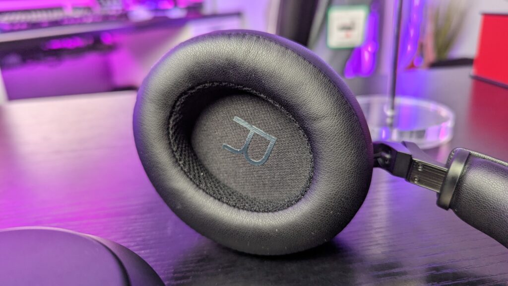 On the right earcup, you can find several buttons and a single slider. Let’s now run through what everything does here, and I will say for the most part everything is pretty simple. The bottom button is your power button. One press turns the headphones on and off. A double press gives you a battery life status and a small long press turns them on and off, and a longer press enables pairing. Above this is a volume rocker and centre button and this is where I am a little confused about Shure’s choices. The volume rocker ONLY turns the volume up and down, whereas the centre button acts as a way to play/pause music and answer calls with a single press, while a double tap skips the track forward and a triple tap skips the track back. Surely it would have made more sense to put volume changes on long presses on the rocker and skip tracks as single presses on the volume rocker or is this just me? Finally above this collection of buttons is a clickable slider which switches between ANC, Environmental Mode and neutral. You’ve got a 3.5mm aux input and a USB Type-C input for charging, of which you can get a maximum of around 20 hours of listening time depending on volume levels and if Environment or ANC mode is switched on.
