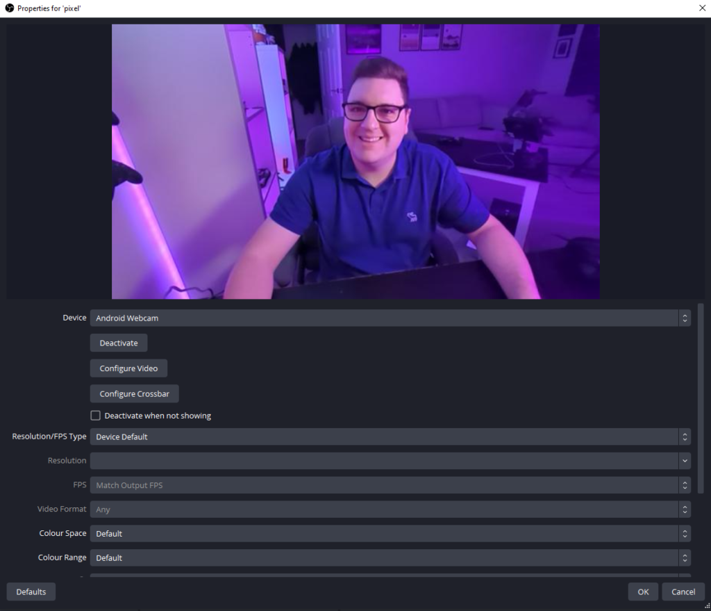 In terms of settings though, it wasn’t too bad. Inside of OBS the Google Pixel 7 Pro managed a max resolution of 1920×1080 with a max refresh rate of 60FPS. This gave me a nice clear image and the dynamic range wasn’t too bad either through the rear camera, and yes, you could definitely get away with using this as a full-time webcam if you need something for work for a meeting every now and then, or to take a call on Teams or Zoom. However, I wouldn’t keep the phone plugged into your PC or laptop full time, because the battery life of your handset will not last, and if you need to be on calls for long periods of time or if you’re in a job that has multiple meetings throughout the day, then maybe think about getting a more traditional webcam. The rear camera gave three preset zoom settings of 0.6, 1. and 2, though you can zoom up to 30 times, on both the rear and front may I add.