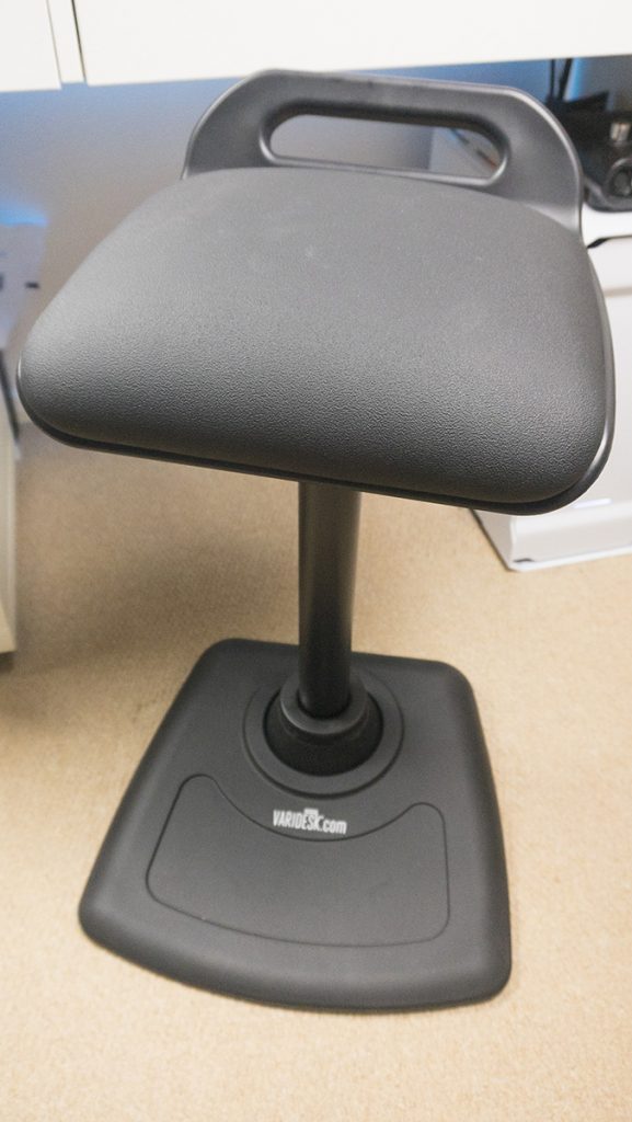 With standing desks becoming more common, VARIDESK has come up with a way to make using one a little more comfortable, as well as convenient. Introducing the new VARIChair, a what’s now being called standing chair, enabling you the user to get some much needed core workout, while working at your desk.