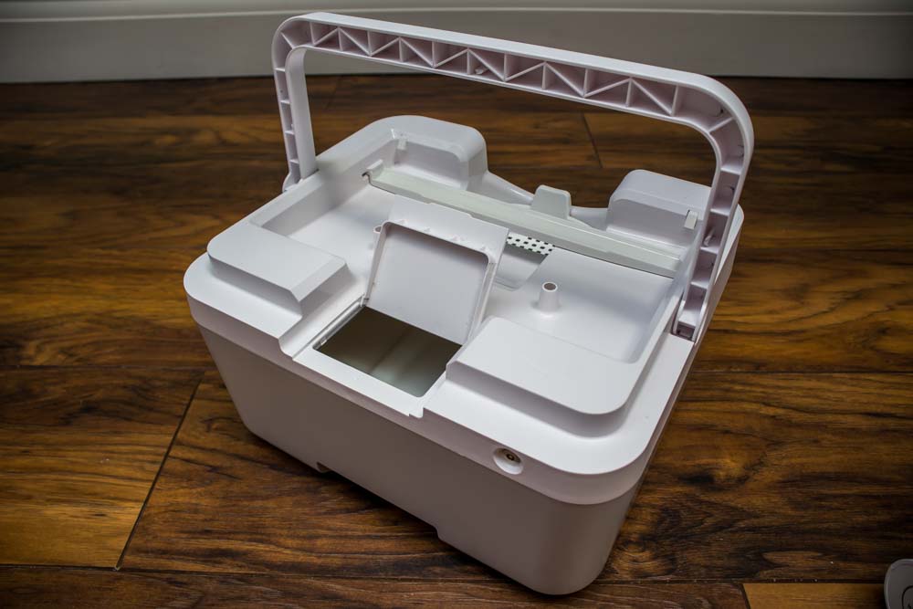 The self-cleaning program is very impressive. Place the cleaner on the base and press the self-clean button on the handle and the 30 seconds (ish) process will begin. The base circulates clean water around the cleaner, discharging any dirty water in a separate compartment and any debris, hair, crumbs etc, into a small tray at the front of the base. When do you need to self-clean? Whenever you feel like it and for me, I’d notice when pulling back the water was running out, so that’s when I did it. Fill the base to the top, there will be enough clean water to clean the downstairs of an average-sized home. The only negative, it’s noisy, really noisy and has quite an aggressive churn to it too. Unlike the cleaner itself, which is very quiet when in use.